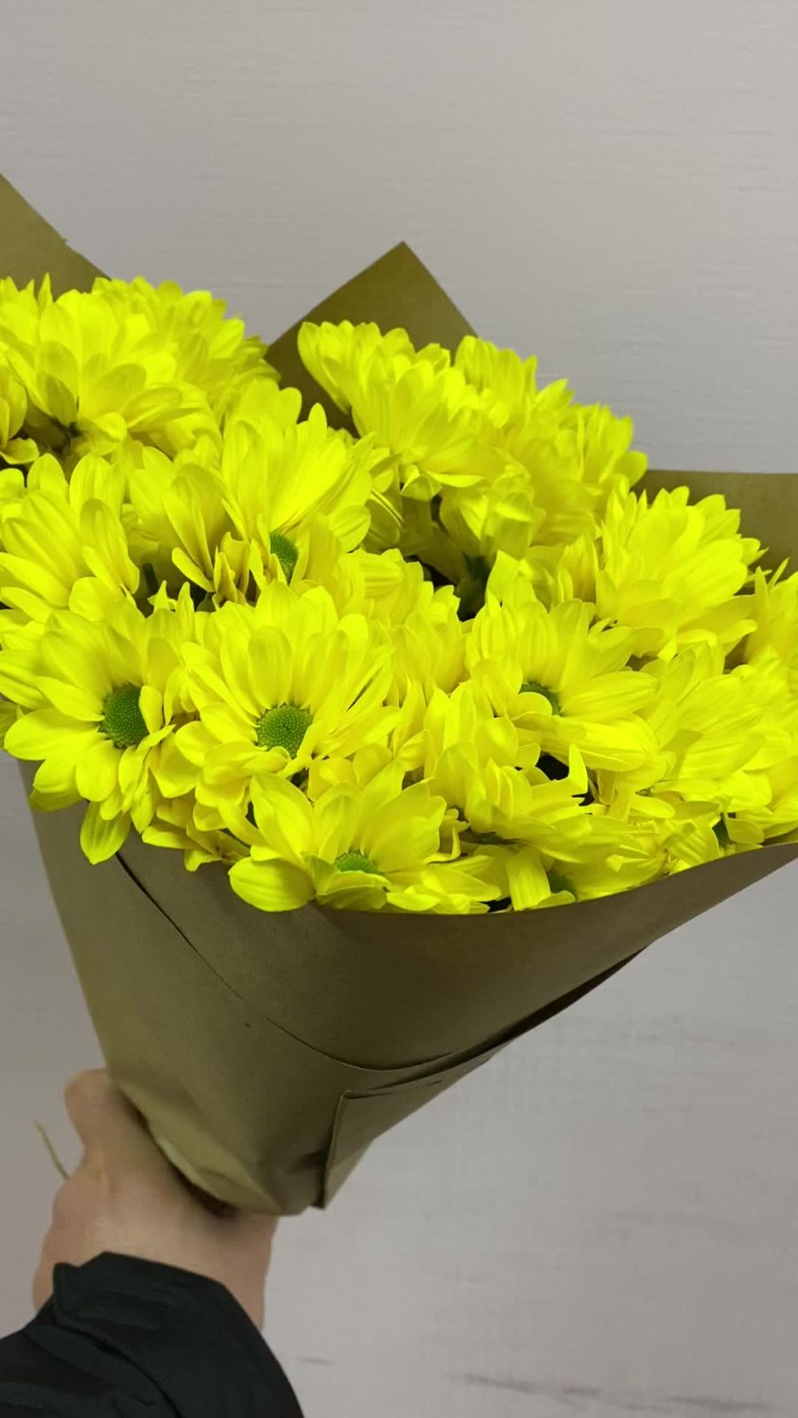Хризантема кустовая желтая ромашковидная - 5 шт.Крафт упаковка - 1 шт.веревка декоративная - 1 шт.
